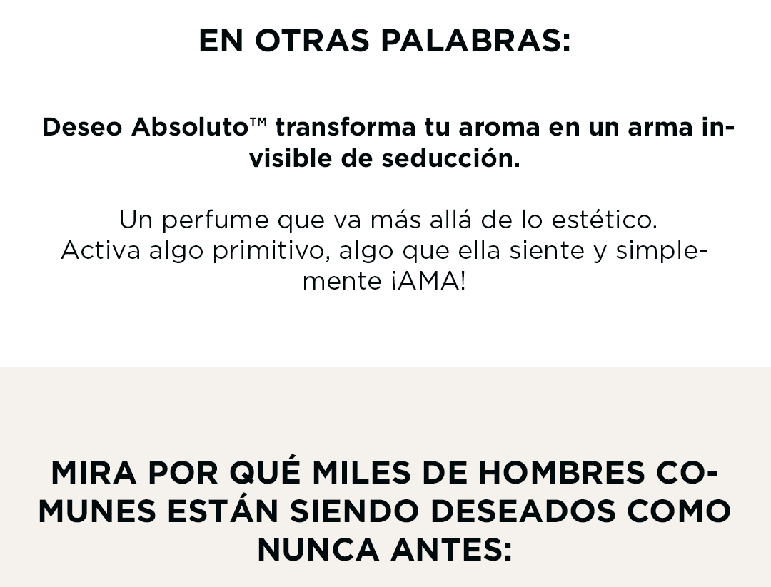 Compré Deseo Absoluto y quedé sorprendido: la fragancia es elegante y la atención que recibí fue evidente en una salida con amigos. Envío a Madrid en 48 horas y empaque impecable. ¡Efecto wow!